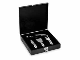 6037,50 ₸ (без НДС)В корзинуНабор для сыра с 4 столовыми приборами из нержавеющей стали и деревянными ручками. Представлен в элегантном футляре