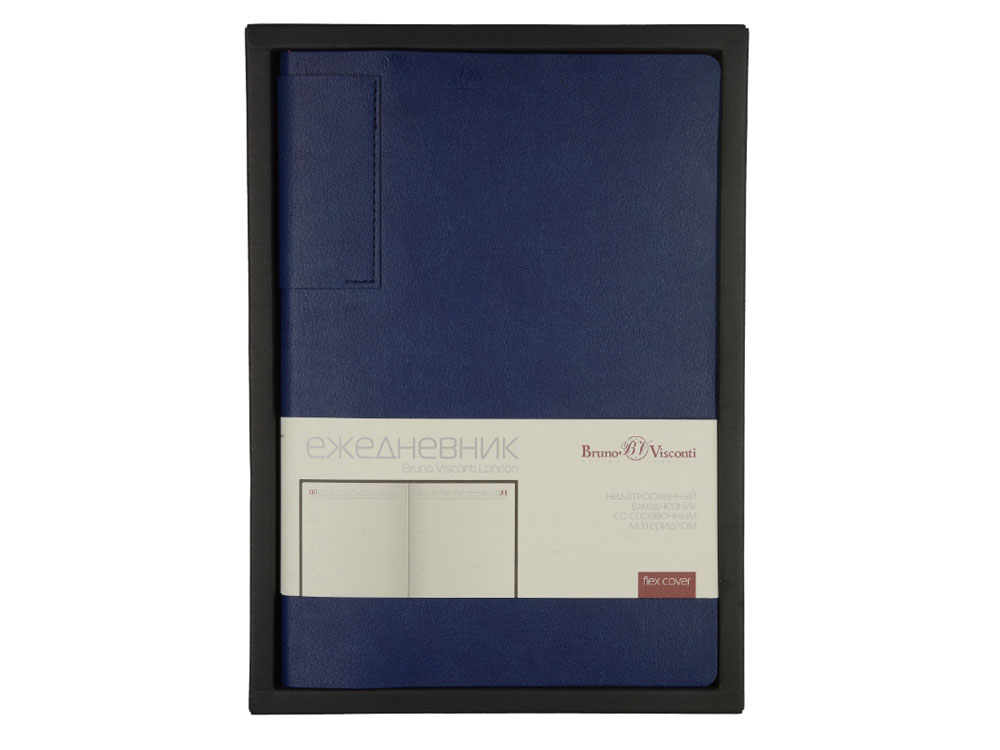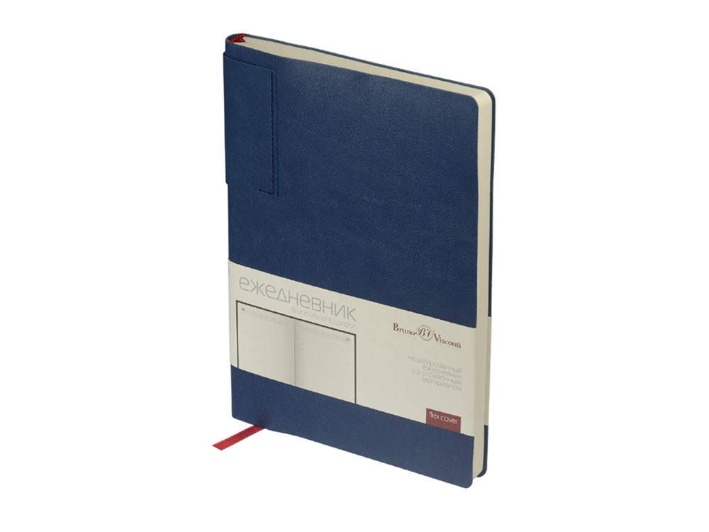 Лаконичная модель в ярком исполнении: гибкая обложка синего цвета с контрастной или в цвет обложки нашивкой. Выполнен из качественной и прочной искусственной кожи, крепление внутреннего блока – книжный переплет, закладка- ляссе. Углы обложки скруглены.
