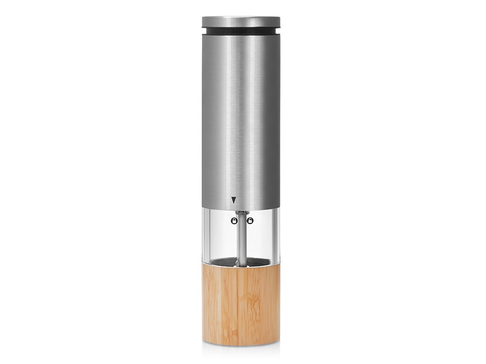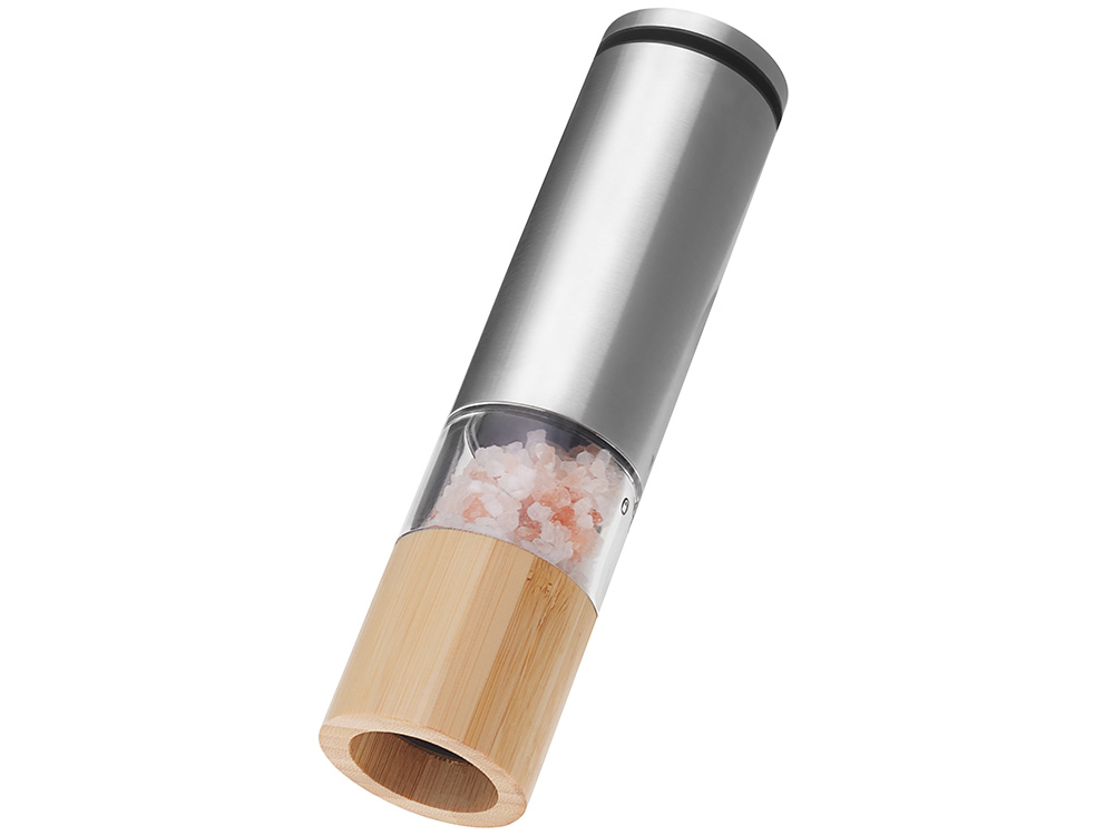 Элегантный и практичный корпоративный подарок, который добавит вкуса в любую кухню — электрическая мельница для специй, сочетающая трендовый дизайн и современную функциональность. Работает от 6 батареек AAA и легко справляется с солью, перцем и другими специями.