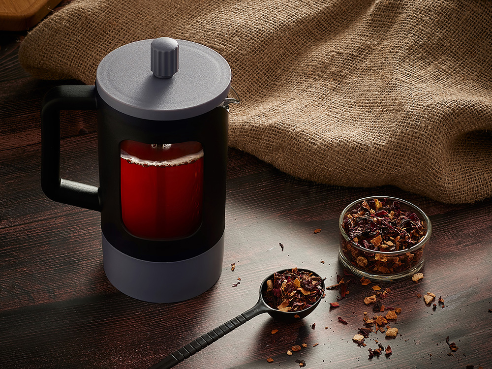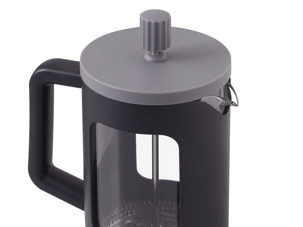 Сдержанная гармония черного и серого в пластиковом корпусе делает этот френч-пресс стильным акцентом любой кухни.