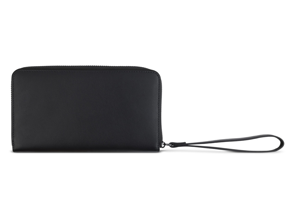 Функциональная организация: основное отделение на молнии, 12 слотов для карт, 2 отделения для купюр, 2 кармана, отделение для монет на молнии, съемная ключница, ремешок на запястье, защита данных RFID.