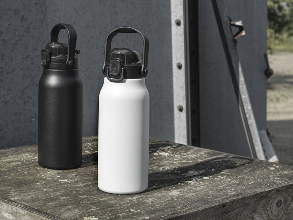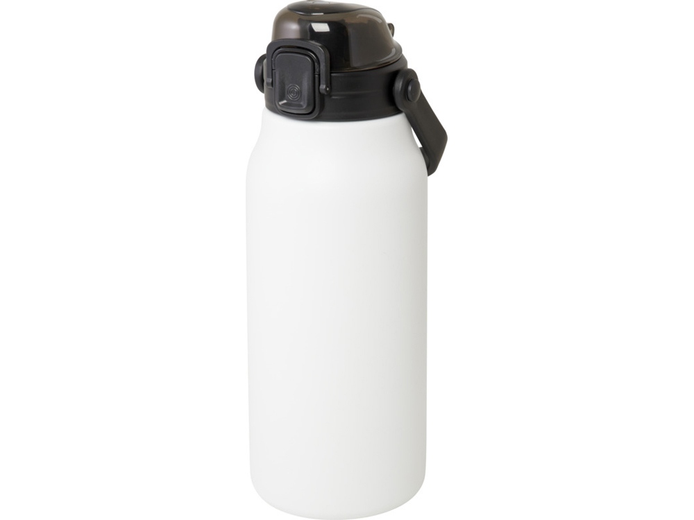 Эта большая бутылка из переработанной нержавеющей стали, сертифицированной RCS, позволит вам поддерживать водный баланс в течение дня и оставаться стильным. Медная вакуумная изоляция сохранит напитки горячими или холодными в течение нескольких часов, а благодаря складной ручке ее легко переносить. Бутылка герметична и имеет удобный механизм открывания с помощью кнопки. Объем составляет 1600 мл. Поставляется в подарочной коробке из переработанного картона. Recycled stainless steel, Recycled PP Plastic. Packaging: FSC Mix Credit P5.1 CU-COC-877277.