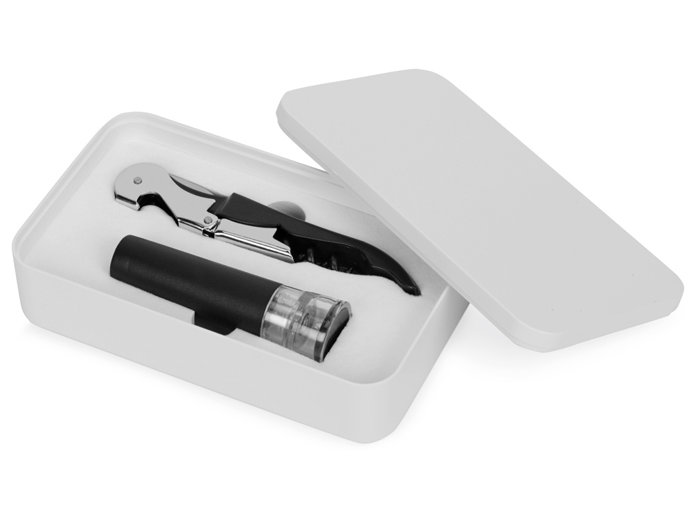 Набор винных аксессуаров “Malbec” – это функциональный подарок для ценителей алкогольных напитков, состоящий из штопора и вакуумной пробки. С помощью этих аксессуаров обладатель набора сможет с легкостью откупорить бутылку вина, продегустировать напиток, создать внутри бутылки вакуум и отложить ее на некоторое время.
