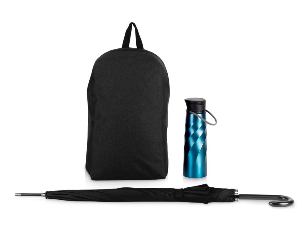бутылка- d8,3 х 26,8 см, зонт- d103 х 86 см, рюкзак- 28 х 11,5 х 46 см