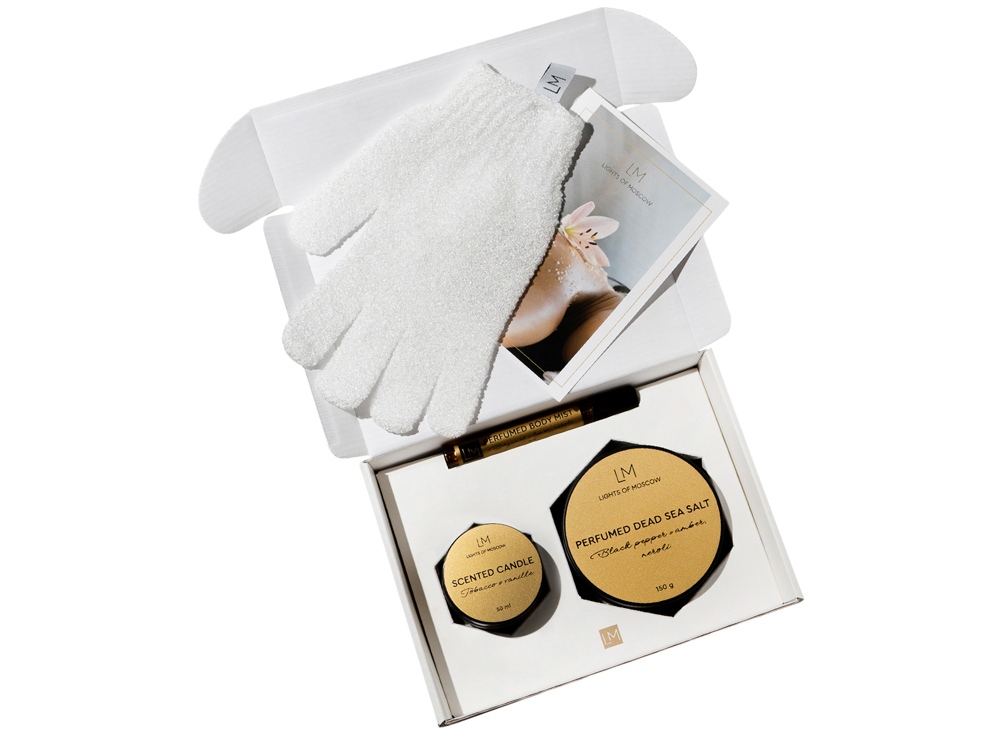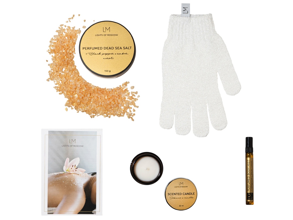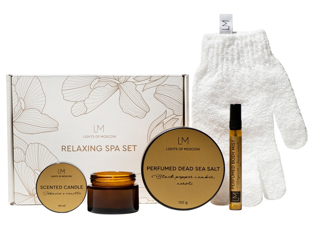 (доставка 6-9 рабочих дней)Relaxing Spa Set от Lights of Moscow подарит хорошее настроение и заряд бодрости, а также послужит полезным подарком для ваших родных, близких, друзей и коллег. SPA -набор снимет стресс, поможет восстановить внутреннюю гармонию и позволит окунуться в мир ароматов селективной парфюмерии. Каждый продукт в наборе создан по мотивам современных веяний в перфорированном искусстве. Подборка из трех топовых ароматических композиций даст возможность примерить каждый парфюм на себе, почувствовать звучание и проникнуться его настроением.