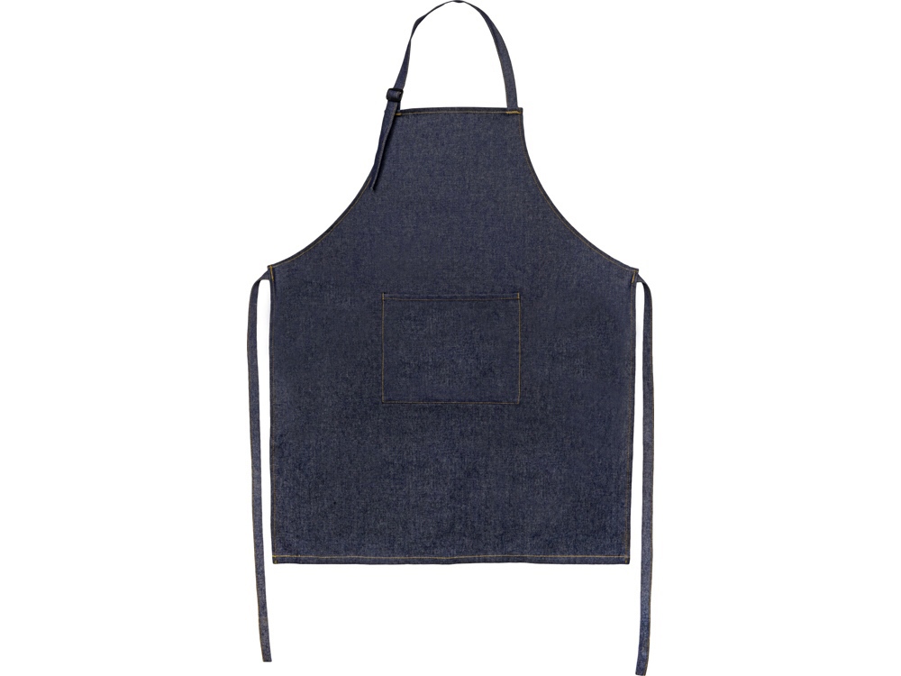 Плотный джинсовый фартук имеет большой вместительный карман.