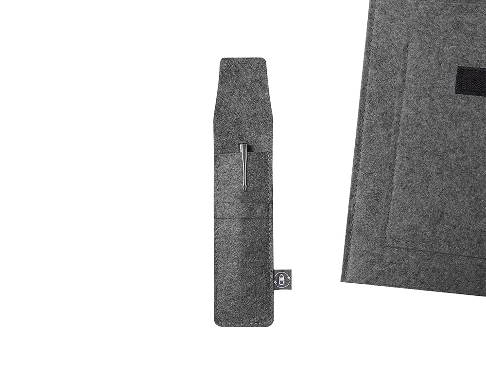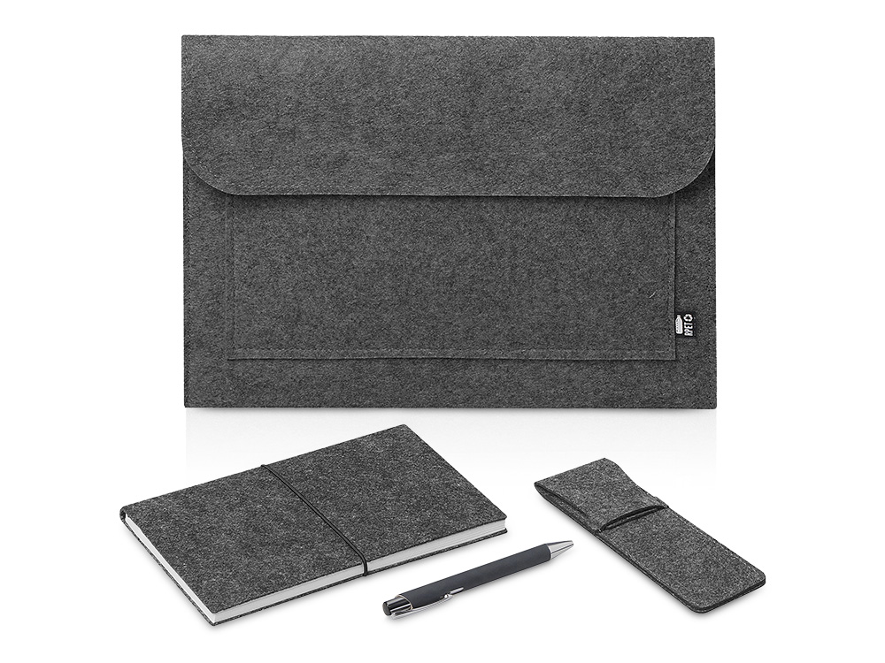 • Вместительный чехол для ноутбуков/планшетов до 14″ из переработанного фетра, который служит упаковкой набора.