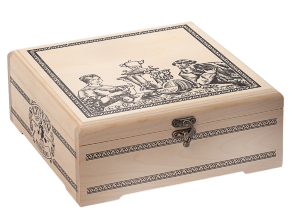 Подарочный набор “Народы России” с чаем и вареньем в деревянной шкатулке без лого