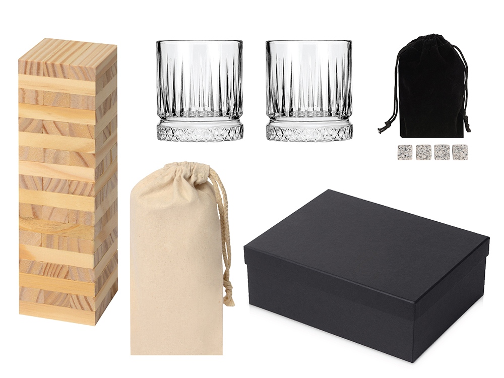 Подарочный набор с бокалами, камнями для виски и дженгойАртикул: 320052
