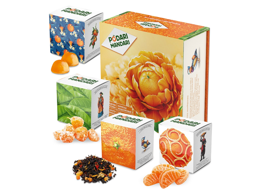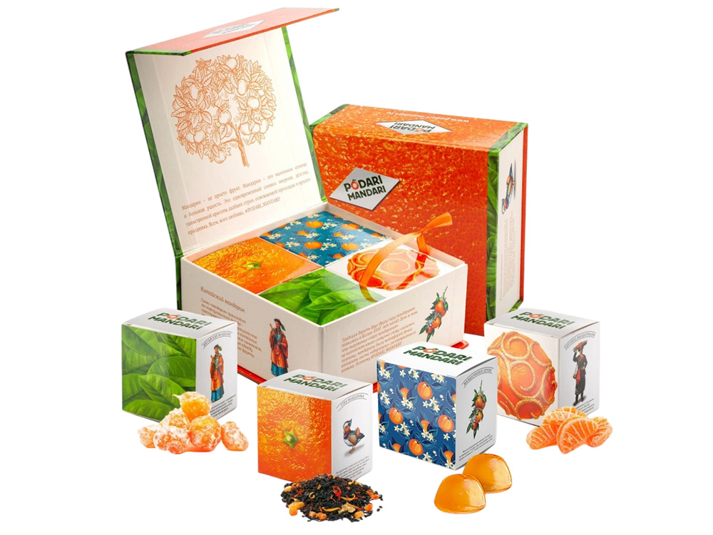 Набор представляет собой метафору мандарина – одного из главных символов Нового года.