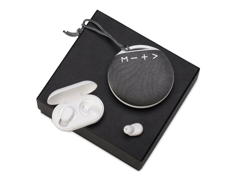 портативная колонка, беспроводные наушники, коробка