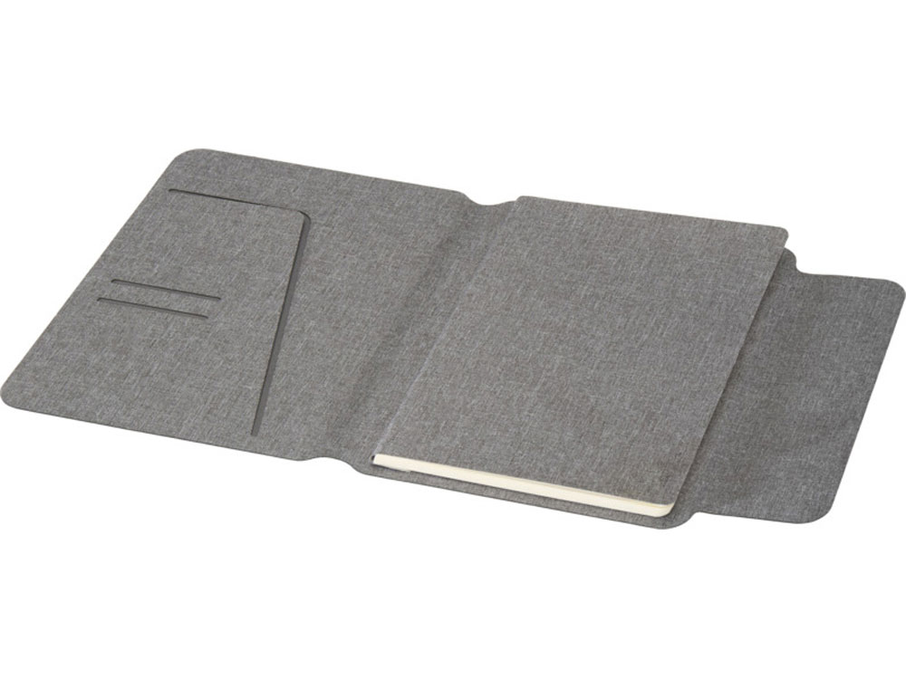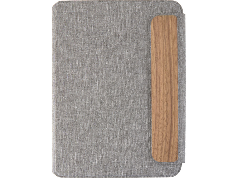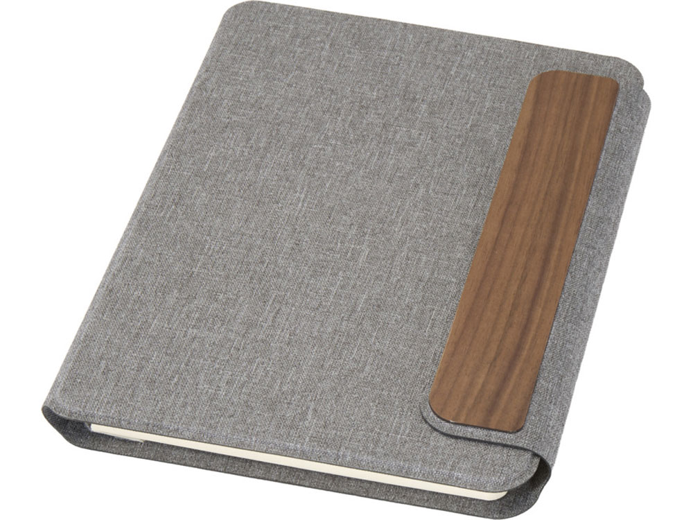 (доставка 6-9 рабочих дней)Обложка портфолио A5 Andean изготовлена из переработанного полиэстера, сертифицированного RCS, что является экологичной альтернативой стандартным материалам. Изделие имеет гладкую серую обложку с закругленными углами, а также магнитную застежку, дополненную изысканной деталью из орехового дерева, что придает ему изысканный вид. Внутри блокнот в гибкой обложке с 64 листами бумаги 80 г/м2 кремового цвета в линейку. Поставляется в шубере из крафтовой бумаги
