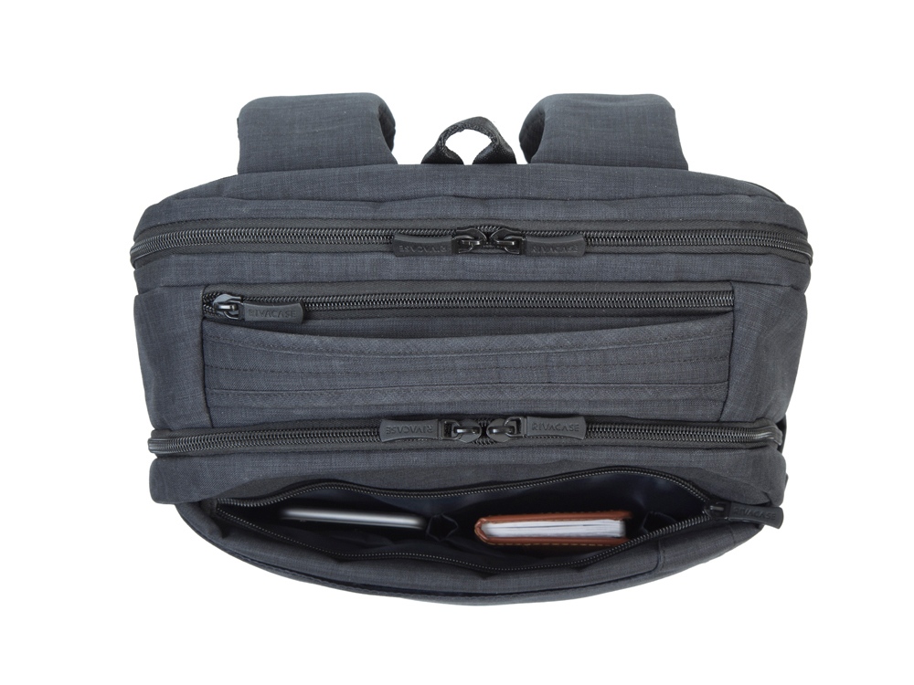 • Основное отделение для ноутбука с вертикальной загрузкой, имеет мягкие стенки, утолщенное дно и дополнительное внутреннее отделение для планшета до 10.1.