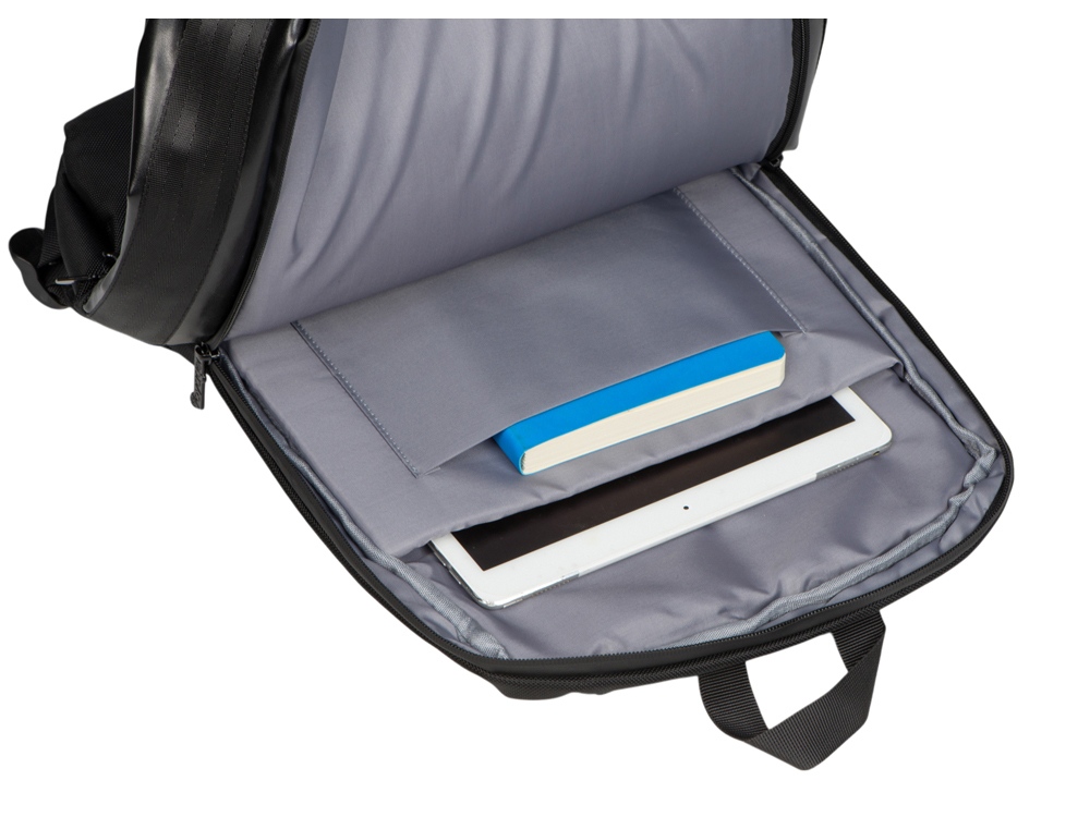 Удобный бизнес-рюкзак для передвижения по городу и деловых поездок состоит из отделения для ноутбука и планшета, большого отделения для одежды с фиксирующими ремнями, 2х наружных карманов на молнии спереди. Конструкция рюкзака продумана до мелочей: внутри большого отделения расположен органайзер для гаджетов и проводов, на спинке есть ремень для крепления на ручку чемодана и регулирующиеся по длине лямки, на лямке – карман для карт или ключей. Водостойкий материал и молнии. В комплекте мешок из спанбонда для хранения и металлический шильд под ваш логотип.