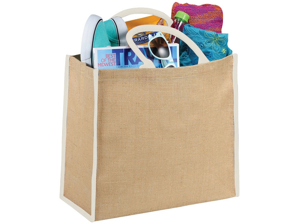 Сумка для покупок. Открытое основное отделение на липучке. Двойные ручки высотой 17 см. Джут.