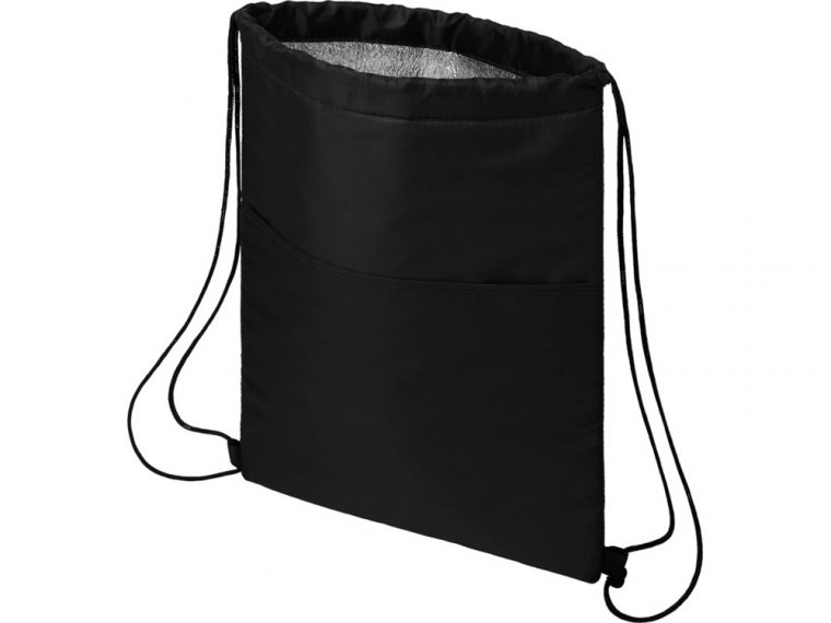Сумка-холодильник затягивается на шнурок черного цвета. С открытым передним карманом. Вмещает 12 банок. Прочность до 5 кг.