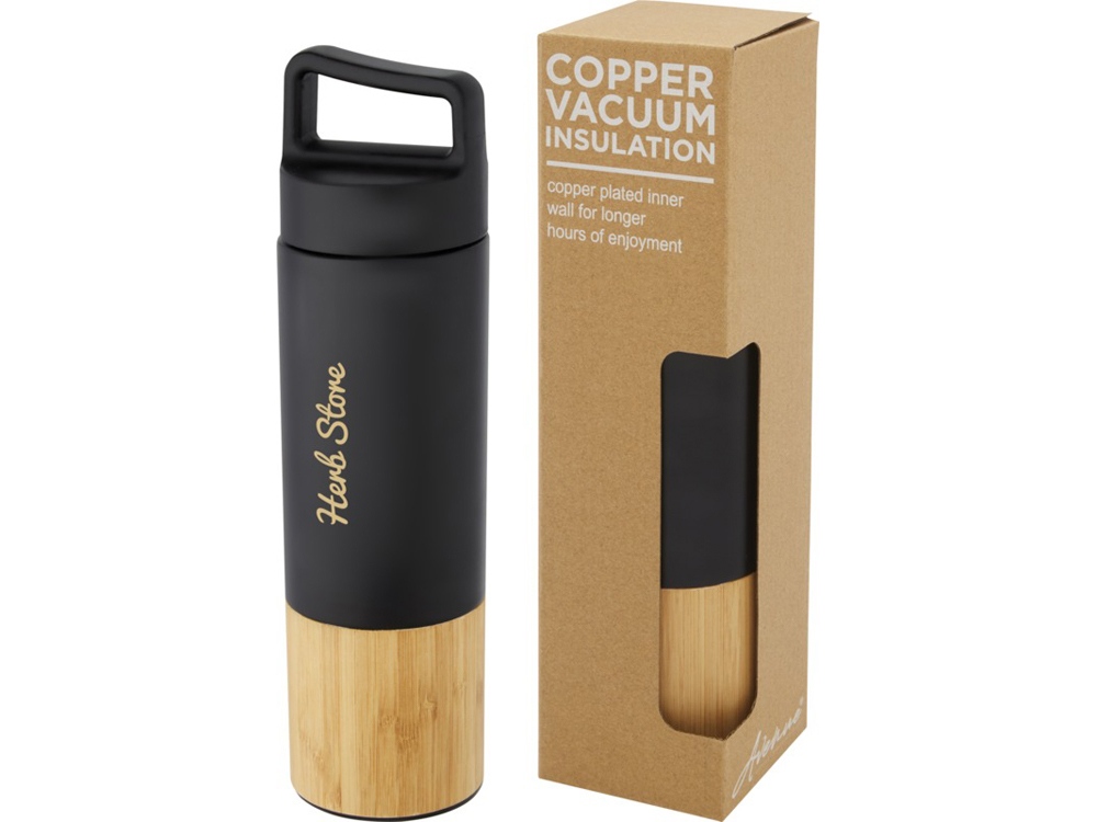 (доставка 6-9 рабочих дней)Бутылка из нержавеющей стали 18/8 с медной вакуумной изоляцией сохраняет напитки горячими или холодными в течение нескольких часов. Имеет модный элемент из бамбука; бутылку легко носить с собой благодаря ручке на верхней части крышки. Бутылка имеет широкое горлышко, поэтому ее легко наполнять и мыть. Протестировано и одобрено согласно немецкому законодательству о безопасности пищевых продуктов (LFGB), а также проверено на содержание фталатов согласно нормам REACH. Объем 540 мл. В коробке из переработанного картона. Нержавеющая сталь, бамбук.
