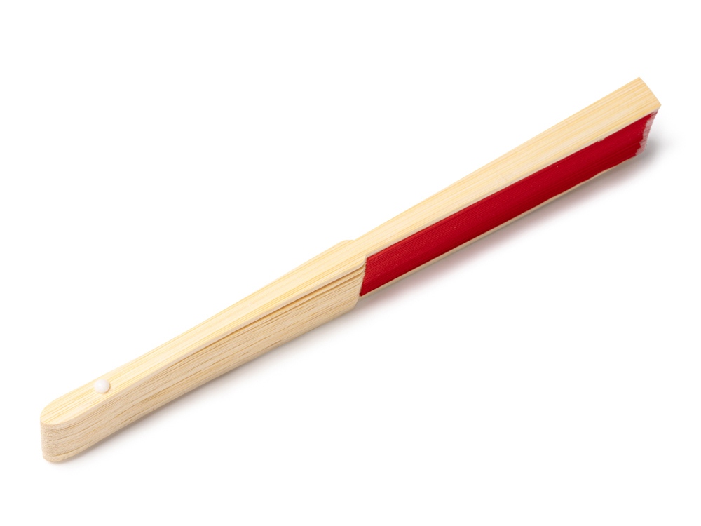 Веер с пластинами из бамбука и полотном из полиэстера.