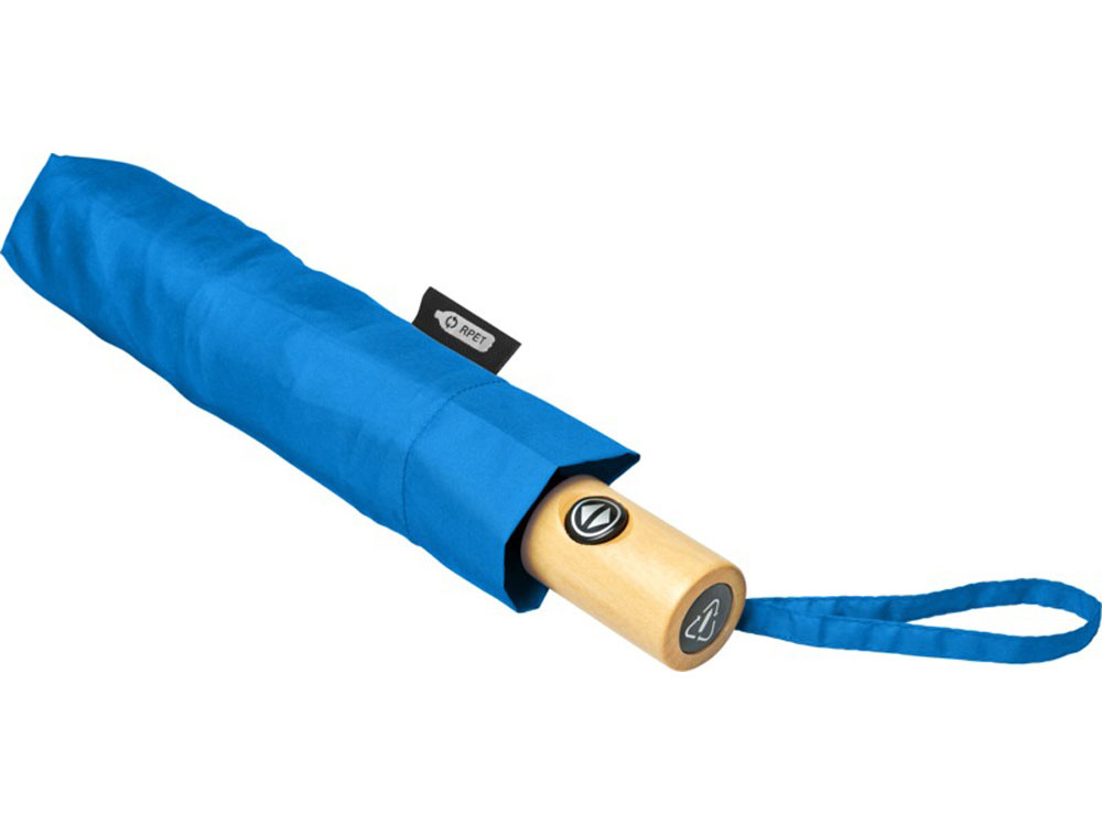Автоматически открывающийся и закрывающийся зонт с куполом из эпонж полиэстера и переработанного ПЭТ-пластика. Прочный металлический стержень, высококачественная рама со спицами из стекловолокна, обеспечивающая максимальную гибкость в ветреную погоду. Поставляется с чехлом и может легко поместиться в сумку или рюкзак для удобного ношения.